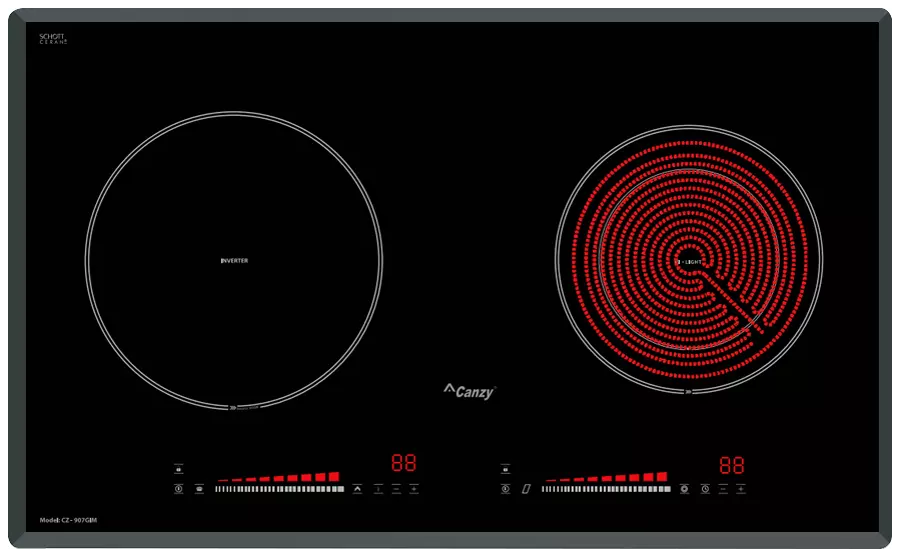 Bếp Điện Từ Canzy CZ 907GIM sử dụng mặt kính Schott Ceran sản xuất tại Đức, mặt kính được làm từ chất liệu gốm thủy tinh có khả năng chịu nhiệt lên đến 1000°C, kháng sốc 750°C. Bề mặt kính chịu nóng lạnh cũng như sự thay đổi đột ngột của nhiệt độ. Độ giãn nở vì nhiệt thấp nên bếp hoạt động rất hiệu quả và cách nhiệt. Mặt bếp tản nhiệt nhanh và được cách điện an toàn với các linh kiện điện tử bên trong thân. Bạn có thể yên tâm sử dụng mà không lo bị bỏng hay điện giật.
